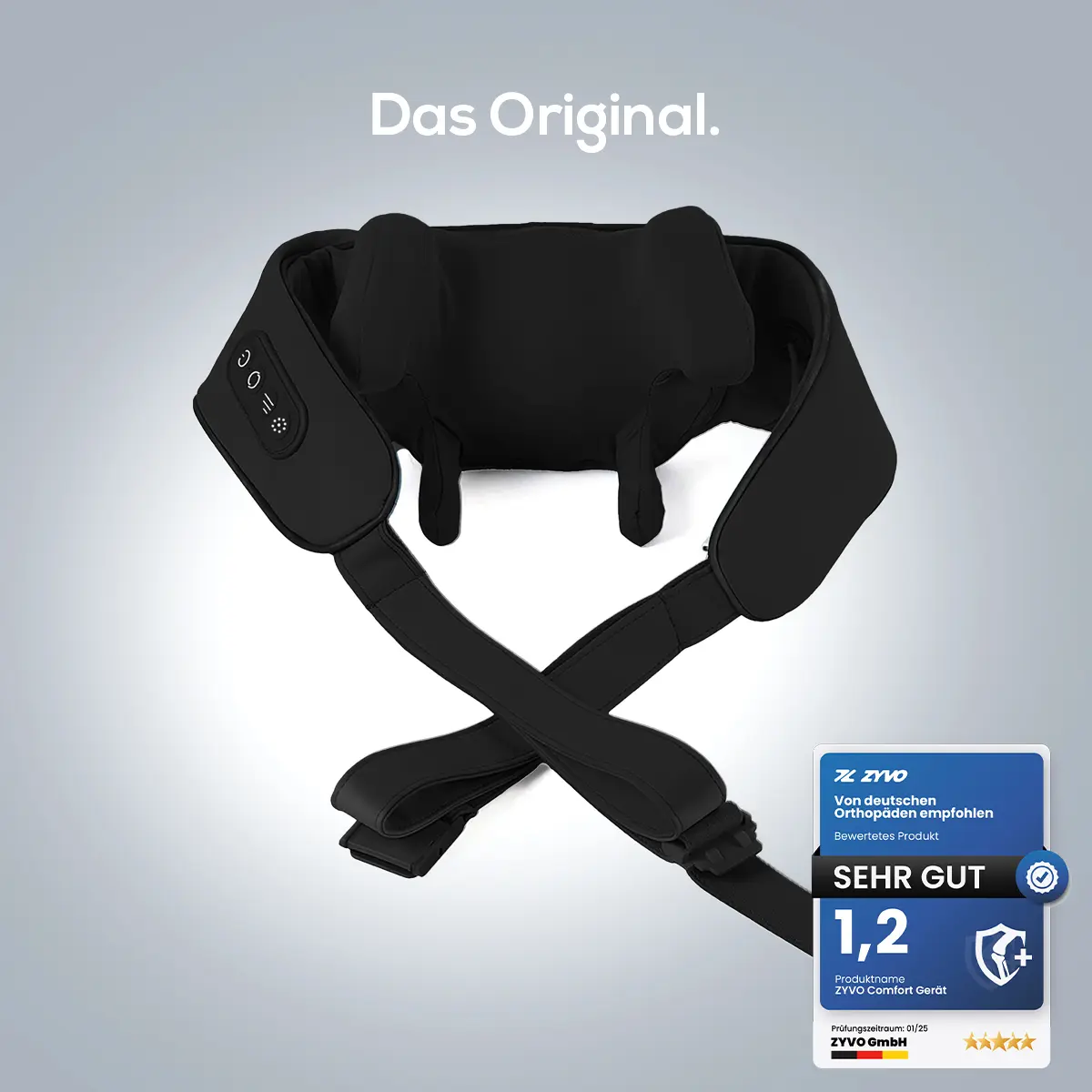 Das ZYVO® Comfort Massagegerät ist unser verdienter Testsieger im Massagegerät-Vergleich 2025. Es kombiniert eine spürbar intensive Schulter- und Nackenmassage mit echter Alltagstauglichkeit – genau der Mix, den viele bei Verspannungen suchen: schnell, unkompliziert und jederzeit verfügbar.